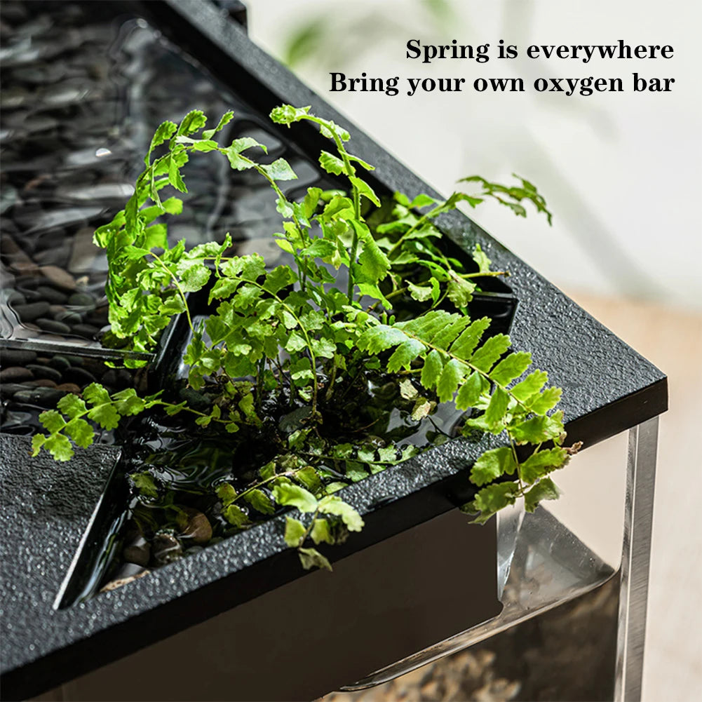 Greenery Oxygen Oasis: Featuring a self-sustaining ecosystem, this aquarium promotes healthy water quality through a marsh filtration system, enhancing both physical and biological water quality.